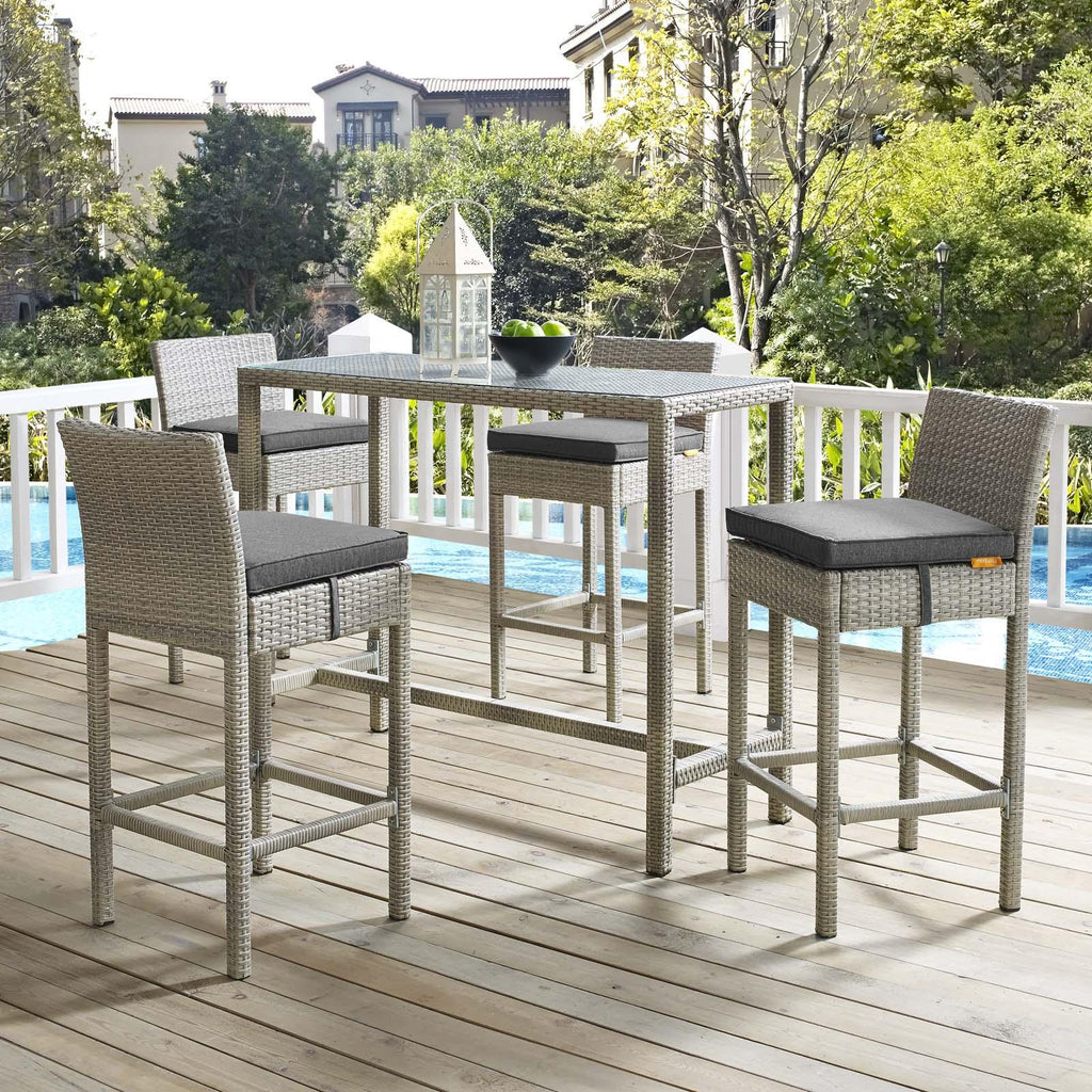 Refresh your alfresco space with the Conduit Outdoor Patio Bar Stool. Bringing transitional style with contemporary modern flair to any outdoor area, Conduit features a powder-coated aluminum frame wrapped in synthetic UV-resistant wicker rattan. Foam padded cushion and waterproof cover offer a comfortable seat while dining or entertaining. All-weather and long lasting, this versatile outdoor bar stool creates a serene setting for your morning tea, sunny lunch, sunset cocktail, and everything in between.