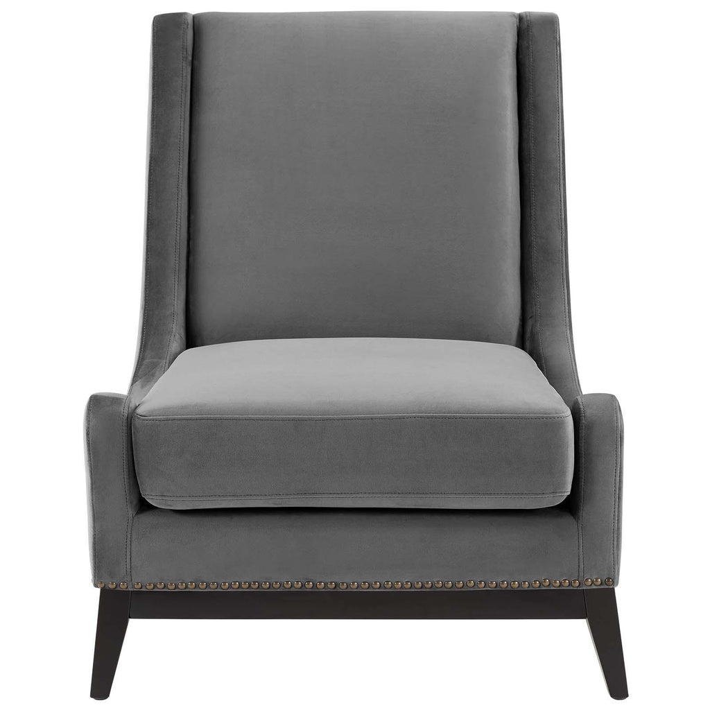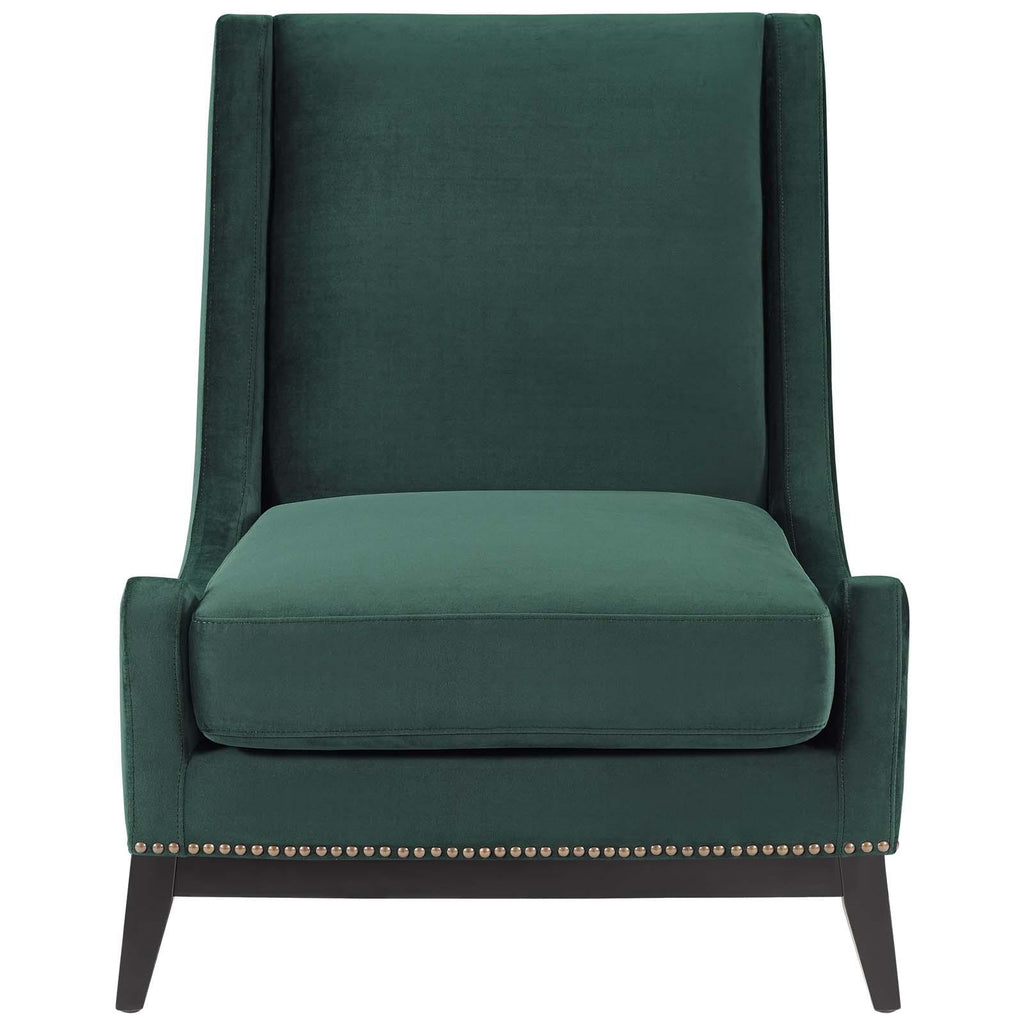 Enjoy leisure time and with the Confident Accent Lounge Chair. A glamorous update for any living room, entryway, bedroom, lounge area or home office, Confident delivers a luxurious seating experience with soft, stain-resistant performance velvet upholstery, elegant nailhead trim, a sinuous spring support system, and dense foam padding. Complete with a removable seat cushion with a removable cover, Confident comes solidly constructed from rubberwood, rests securely on four splayed black-stained wood legs with non-marking foot caps, and supports up to 300 lbs. Transform your home with this graceful velvet accent chair.
