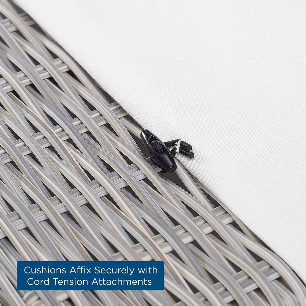 Enjoy fresh air and alfresco relaxation with the Conway Outdoor Patio Wicker Rattan Left-Arm Sectional Sofa Chair. Wrapped in UV-resistant light gray synthetic wicker rattan, this sectional sofa piece boasts organic texture and a neutral hue that brings a calming presence to your outdoor area with a modular design that adapts to variety of configurations to suit your space. The frame of this outdoor chair is crafted with durable powder-coated aluminum and rests on L-shaped legs with plastic foot glides. Thick foam padded cushions covered with washable water-resistant Sunbrella� fabric covers offer a comfortable seat and affix securely to the left-arm chair with cord tension attachments. Trending aesthetics and a classic design define this outdoor patio furniture collection making it a beautiful addition to any outdoor space including the backyard, patio, porch, balcony, or poolside. Assembly required. Patio Chair Weight Capacity: 300 lbs.