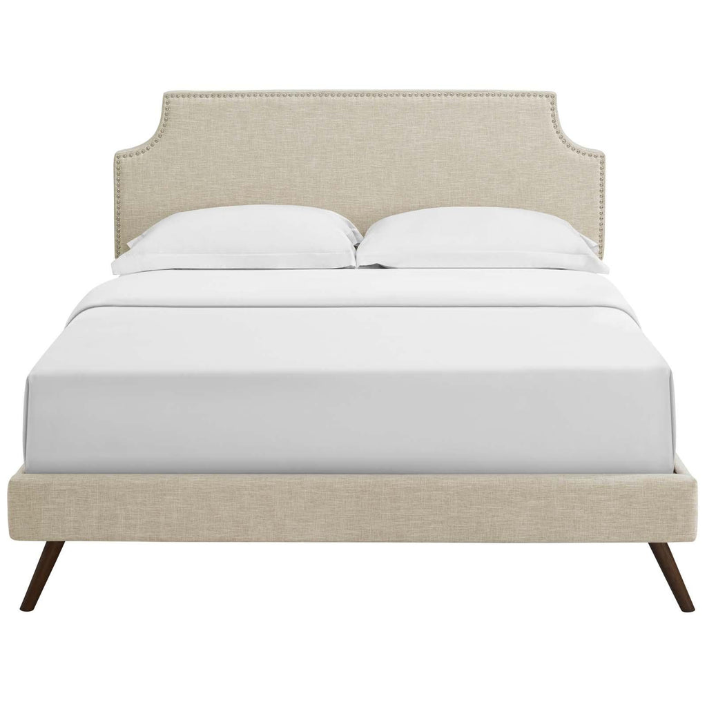 Accelerate your bedroom decor with the Corene Platform Bed. Made with a solid wood frame upholstered in polyester fabric, Corene features tapered wood legs, plastic foot glides, stylish headboard, and ten sturdy wood slats with a centered supporting bar and two support legs for enhanced stability. Due to the wooden slat support system, the use of a box spring is unnecessary. Corene supports memory foam mattresses such as our Aveline series. Perfect for mid-century modern, minimalist and contemporary bedrooms. Mattress not included. Assembly Required.