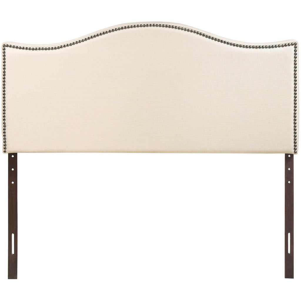 Wavy lines and a welcoming design make the Curl King Headboard a selection of elegance. Upholstered in fine linen fabric with a fashionable nail button trim, Curl King Headboard shows off the best of modern design with a fluid style that speaks volumes. Made from particle board with solid wood poles, Curl makes it easy to curl up while pleasantly supported by this perfect centerpiece for most King beds.
