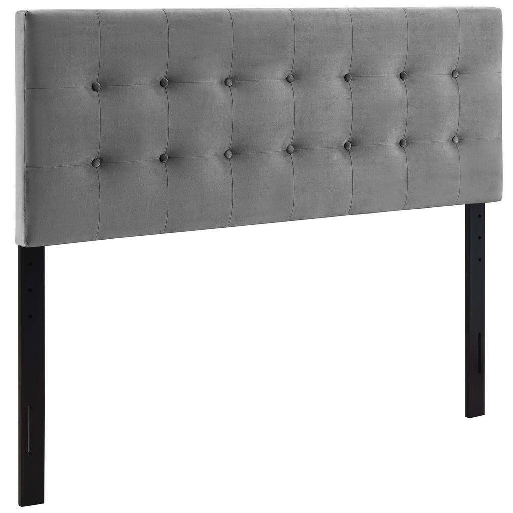Instill classic elegance and modern luxury with the Emily Performance Velvet Biscuit Tufted King Headboard. Emily features beautiful biscuit button tufting for plush vintage glamour and timeless appeal. An elegant centerpiece to a master suite or guest bedroom, this upholstered velvet headboard for king bed frames provides a soft, stain-resistant update for premium comfort while relaxing, reading, or conversing in bed. Solidly constructed from plywood and fiberboard with dense foam padding, this king-size velvet headboard comes with five mounting positions that are height adjustable from 45" - 52.5".