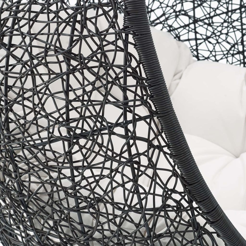 Embark on moments of metamorphosis and rebirth with an exotic hanging outdoor swing chair. Transform the mundane to heightened states of consciousness with Encase Outdoor Swing Chair. This hanging swing chair is comprised of a sturdy espresso metal stand and rattan seat. Surround yourself with plush Sunbrella� fabric cushions to complete entry into a relaxed state in the Encase Hanging Chair.