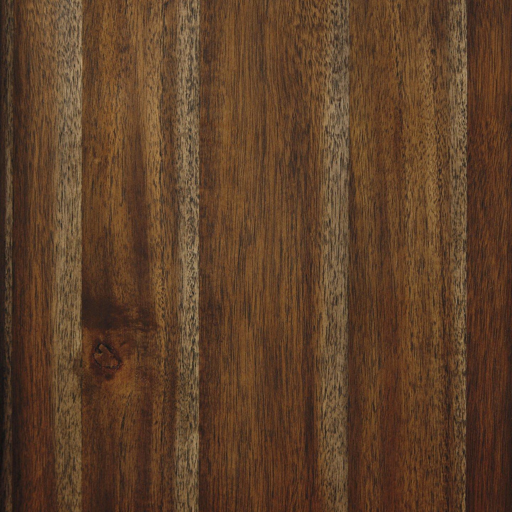 A fresh, new take on traditional style. This dresser with mirror meets today’s design tastes with beauty and grace. Its tobacco brown finish allows the natural grain of the acacia veneers to show through in an organic way. Aged brass-tone knobs dress the fronts of the roomy drawers. A hidden pull-out tray behind the top middle drawer puts your small valuables out of sight. This is a look you can appreciate for years to come.