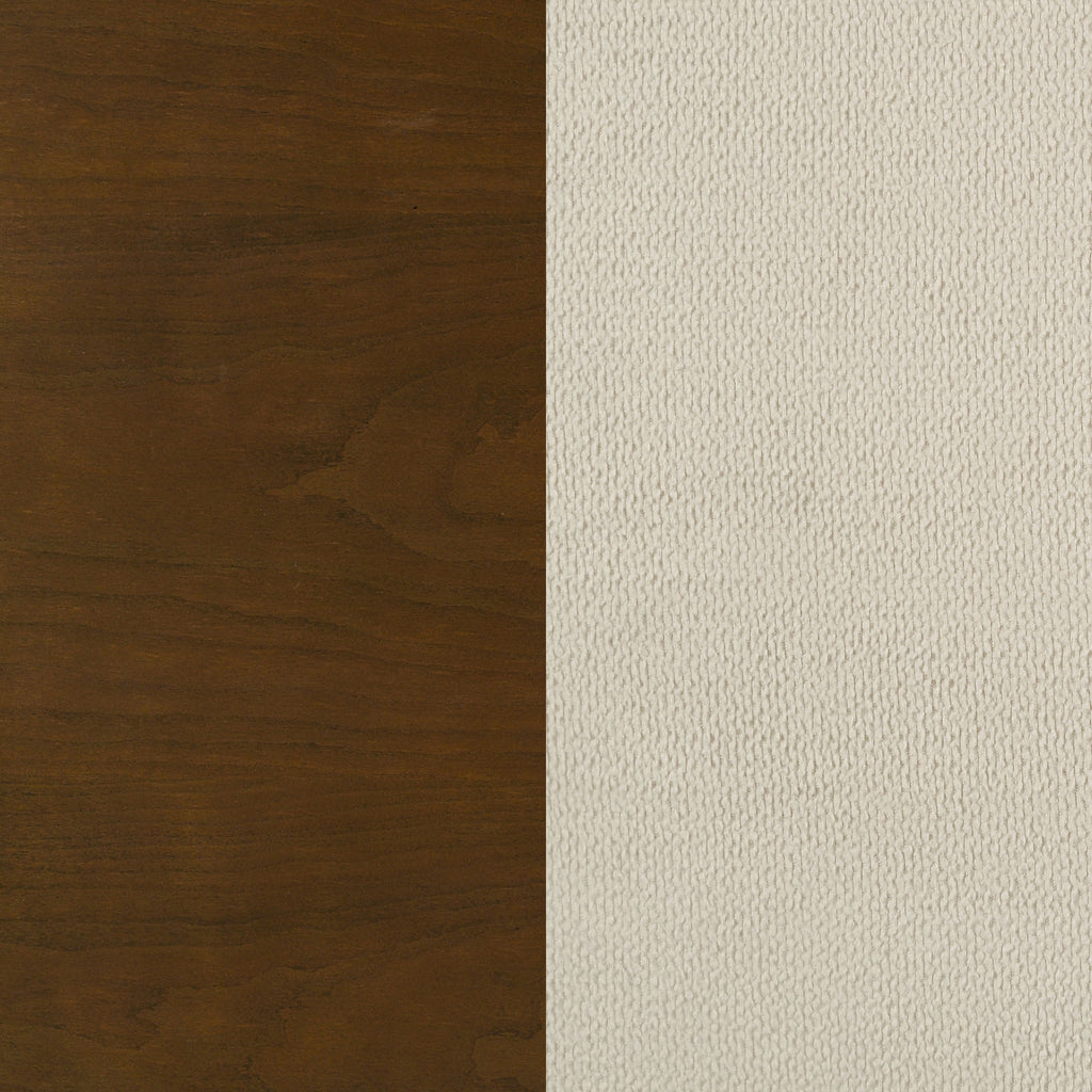 This panel bed reimagines classic Louis Philippe elegance with softened curves and graceful symmetry. Wrapped in cream fabric, the upholstered headboard is framed with cutaway corners and sculpted rails, creating a romantic focal point. A warm brown cherry finish enriches the frame with traditional depth and charm. Expertly crafted from solid rubberwood, cherry veneer, and padded fabric, it offers lasting beauty and serene comfort. Key Features: • Queen bed with sculpted profile and cutaway corners for graceful, romantic appeal • Brown cherry finish deepens the frame’s warmth with timeless traditional richness • Cream upholstered headboard offers soft texture and elegant tailored presence • Wraparound side rails create visual flow and grounded comfort for restful nights • Crafted from solid rubberwood, engineered wood, cherry veneer, fabric, and foam • Foundation required to support mattress and complete the elevated silhouette