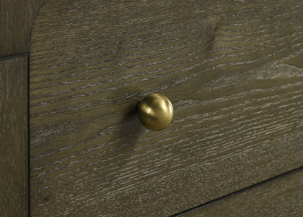 Create a sophisticated retreat in your bedroom with this bedroom set. Featuring a transitional design with rounded corners and trending details, this set includes a canopy bed, nightstand, dresser, mirror, and optional chest. The dark cocoa finish and brass knobs add a touch of elegance, while the solid hardwood and ash veneer construction ensures durability. Each piece combines style and functionality, creating a cohesive and elegant look for your bedroom.