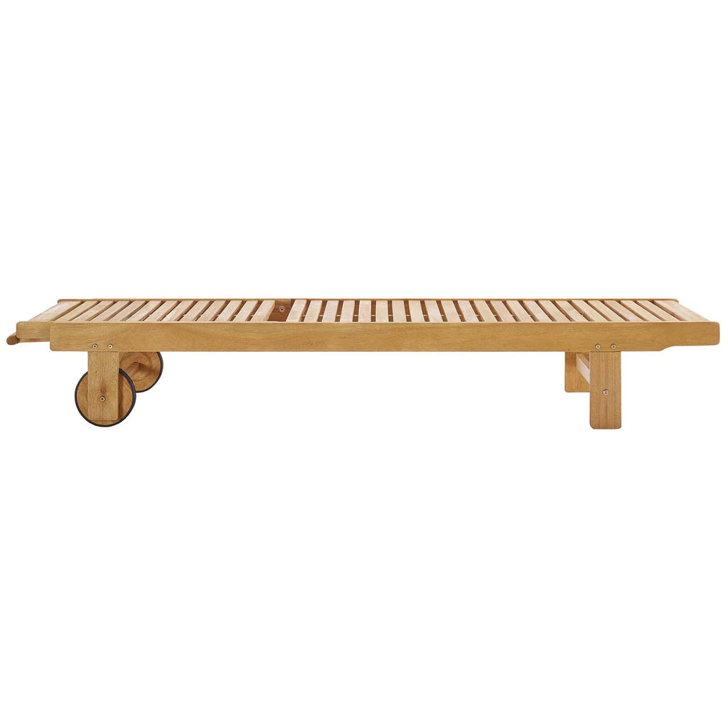 Reinvent the elegance of minimalism with this Hatteras Outdoor Patio Eucalyptus Wood Chaise Lounge Chairs Set of 2. Hatteras has a refreshing back to basics feel that elevates your patio decor to new heights. The FSC certified Eucalyptus wood slats create natural airflow for comfortable lounging. Each of the Hatteras Patio Lounge Chairs have two forward-backward rolling wheels, and five back recline settings, for a customizable angle and position suited for enjoyable leisure time spent at the patio, poolside, porch, backyard, or deck.