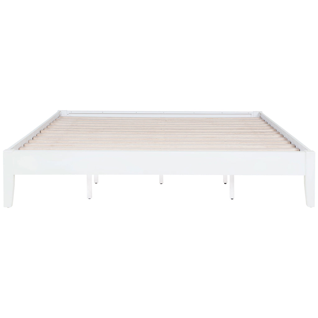 Designed for versatility, this universal platform bed offers a sturdy foundation with a fully slatted, mattress-ready design. Crafted from durable rubberwood and pine, it ensures lasting support and stability. Pre-drilled holes on the back legs allow for effortless headboard attachment, providing customization options to suit various bedroom styles. With its clean lines and solid construction, this bed serves as a functional and stylish base for any sleep space.