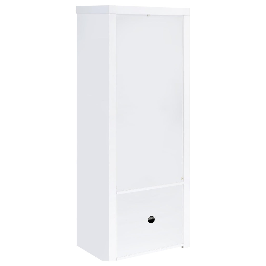 Extend a media console or add easy display space in a den or bedroom with this contemporary tower. Designed to accompany the matching media console, the tower adds a lower cabinet with shelving inside, and a pair of glass display shelves. It’s the perfect solution when both hidden and accessible storage are desired. A crisp white finish adds to the modern look and complements virtually any space. Melamine paper surfaces are designed for durability, perfect for everything from games and media to charming decor. Key Features: • Contemporary tower adds lower cabinet and glass display shelves • Crisp white finish complements any space • Melamine paper surfaces for durability • Perfect for hidden and accessible storage • Ideal for games, media, and decor