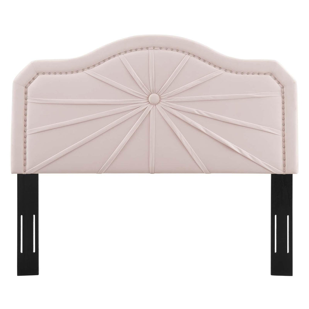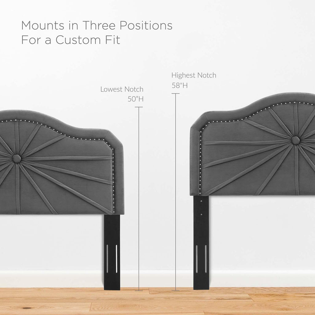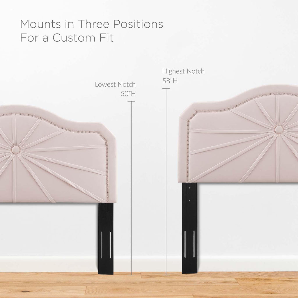 Infuse a kid's bedroom, guest room, or college dorm with the vintage modern elegance and glam deco style of the Kristin Performance Velvet Twin Headboard. Featuring luxe velvet texture, an arched shape, nailhead trim, and a pleated design, this twin size headboard is a beautiful update. Upholstered in soft, stain-resistant performance velvet, this padded headboard offers supportive comfort while sitting up in bed resting, relaxing, reading, or watching TV. A beautiful backdrop for a variety of bedding styles, this adjustable headboard fits almost any twin bed with its three mounting positions. Assembly required.