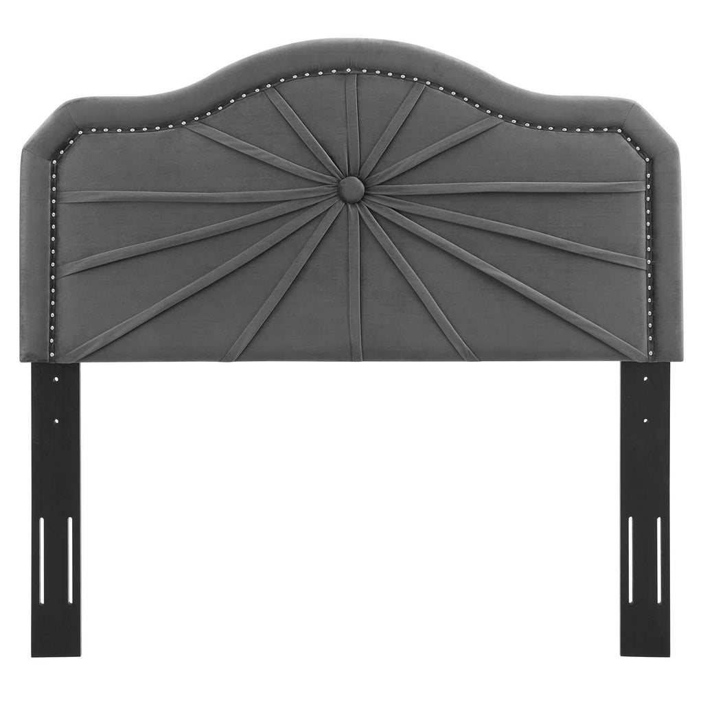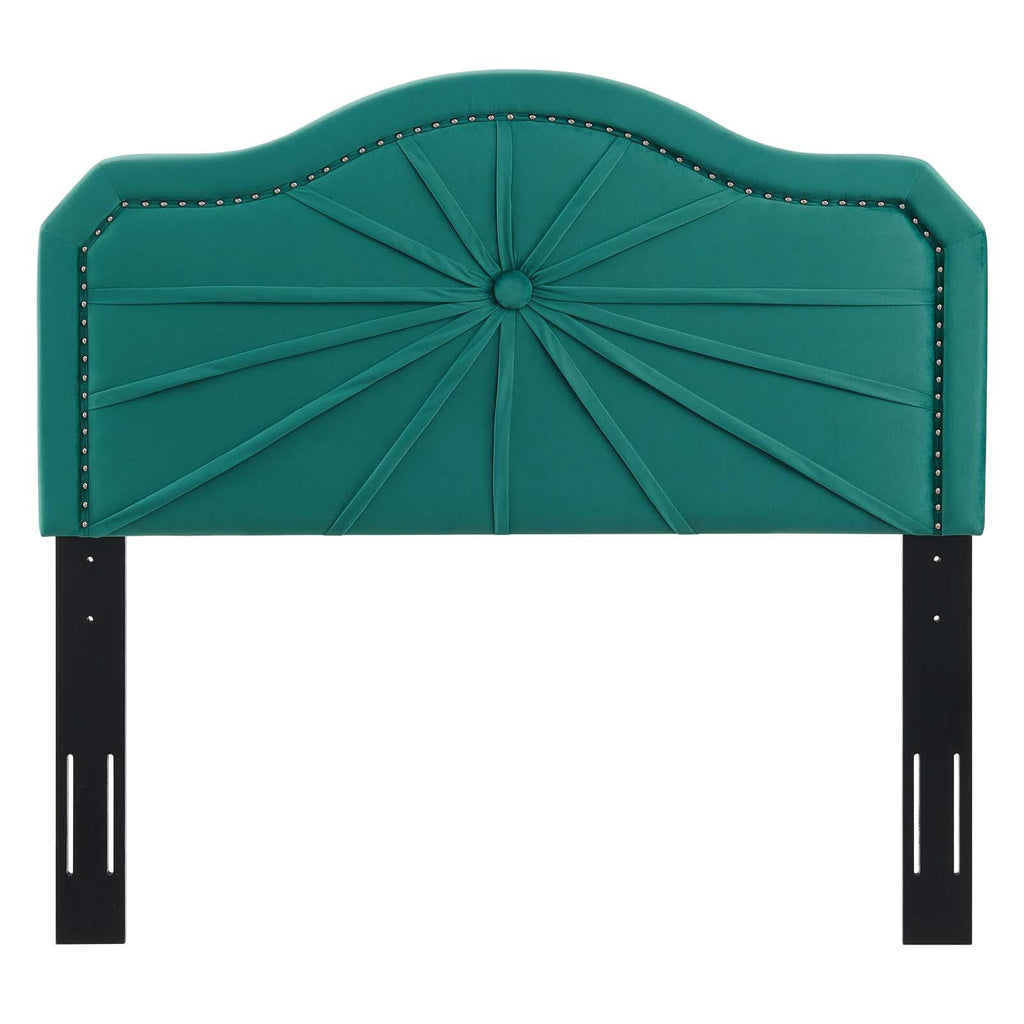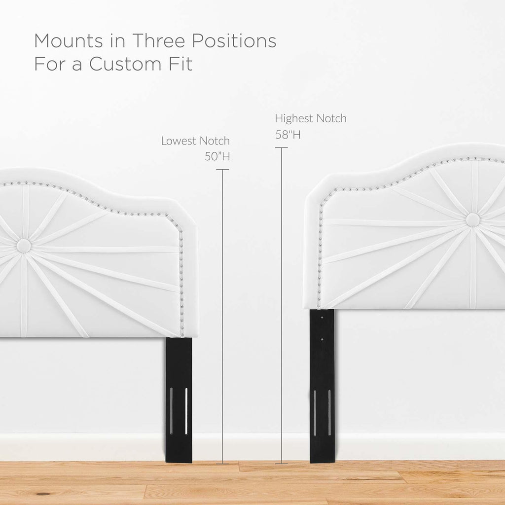 Infuse a kid's bedroom, guest room, or college dorm with the vintage modern elegance and glam deco style of the Kristin Performance Velvet Twin Headboard. Featuring luxe velvet texture, an arched shape, nailhead trim, and a pleated design, this twin size headboard is a beautiful update. Upholstered in soft, stain-resistant performance velvet, this padded headboard offers supportive comfort while sitting up in bed resting, relaxing, reading, or watching TV. A beautiful backdrop for a variety of bedding styles, this adjustable headboard fits almost any twin bed with its three mounting positions. Assembly required.