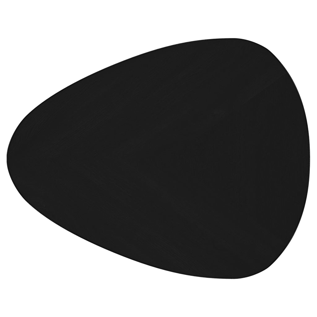 Elevate your living room with this sleek coffee table set, blending modern style with timeless craftsmanship. Handcrafted from solid mango wood, each table boasts a smooth black finish that emphasizes its triangular tabletop design with softly rounded corners. The splayed iron legs feature a black powder-coated finish, offering sturdy support with an airy aesthetic. Perfect for creating a cohesive and contemporary centerpiece, this occasional set combines durability and elegance effortlessly.