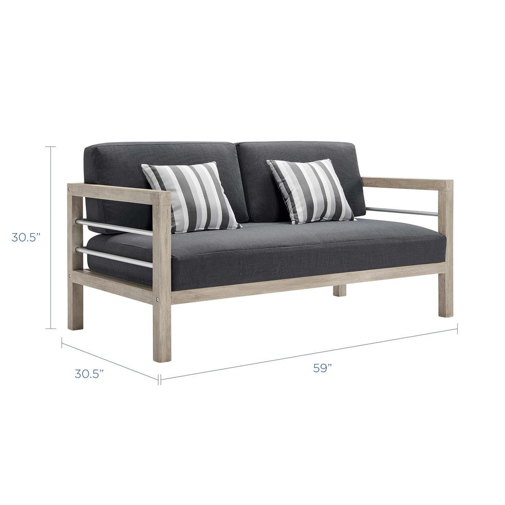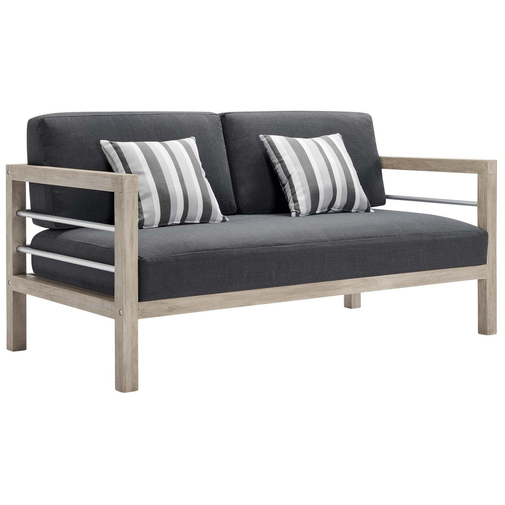 Invoke the refreshing feel of coastal accents with the Wiscasset 2 Piece Outdoor Patio Set. This FSC certified Acacia wood set includes the two-seater loveseat and armchair. Densely padded all-weather cushions come with durable machine washable covers. This modern outdoor set will effortlessly enhance the decor of your patio, deck, porch, or poolside.